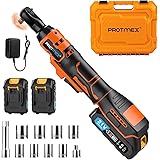 52% OffProtmex 3/8'' Cordless Ratchet Wrench, 60FT-LBS (80N.m) Electric Ratchet with 21V 2 X 2.0Ah Battery, 400 RPM Chargeable Power Ratchet Driver Set with 8 Sockets,1/4 Adaptor, 3" Extension Bar