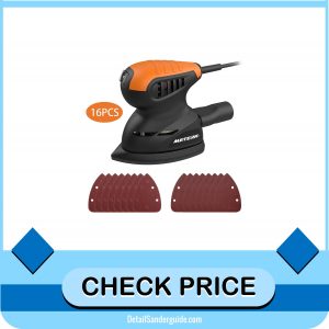 Best sanding tool for doing it yourself type of guys. with an operating capacity of 13500 RPM. This is the best tool for home decoration. The collection port makes it possible to collect the dust from the narrow spaces. The product package includes a combination of 16 sandpapers of different Grts half of them were 80 Grts and half is of 180Grts, one pipe to connect with the vacuum cleaner and the sender itself.