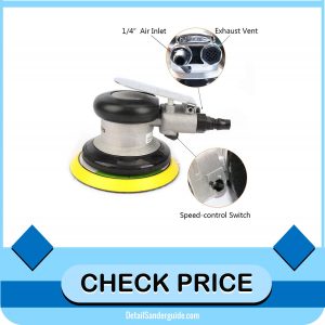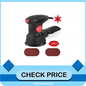 This best random orbital sander for woodworking is truly efficient and easy to control. It is operative on the effective speed of 12000 RPM. This is recommended to add 4 to 5 drops of oil before using it. This will produce more efficient results if we let it on for some seconds before the operation. The product is designed to apply the hoop and loop sanding technique.