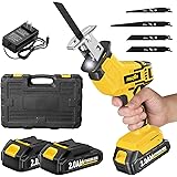 FULLYEA Cordless Reciprocating Saw, 0-3500 RPM Electric Saws with 4 Blades & 2 Batteries, Tool‑Free Change, Handheld Saw Lightweight, Battery Reciprocating Saws for Cutting Wood PVC Pipe (Yellow)