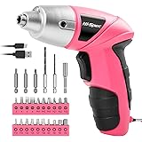 Hi-Spec Electric Screwdriver 27pc 3.6V Pink USB Small Power Screwdriver Set. Cordless & Rechargeable with Driver Bit Set